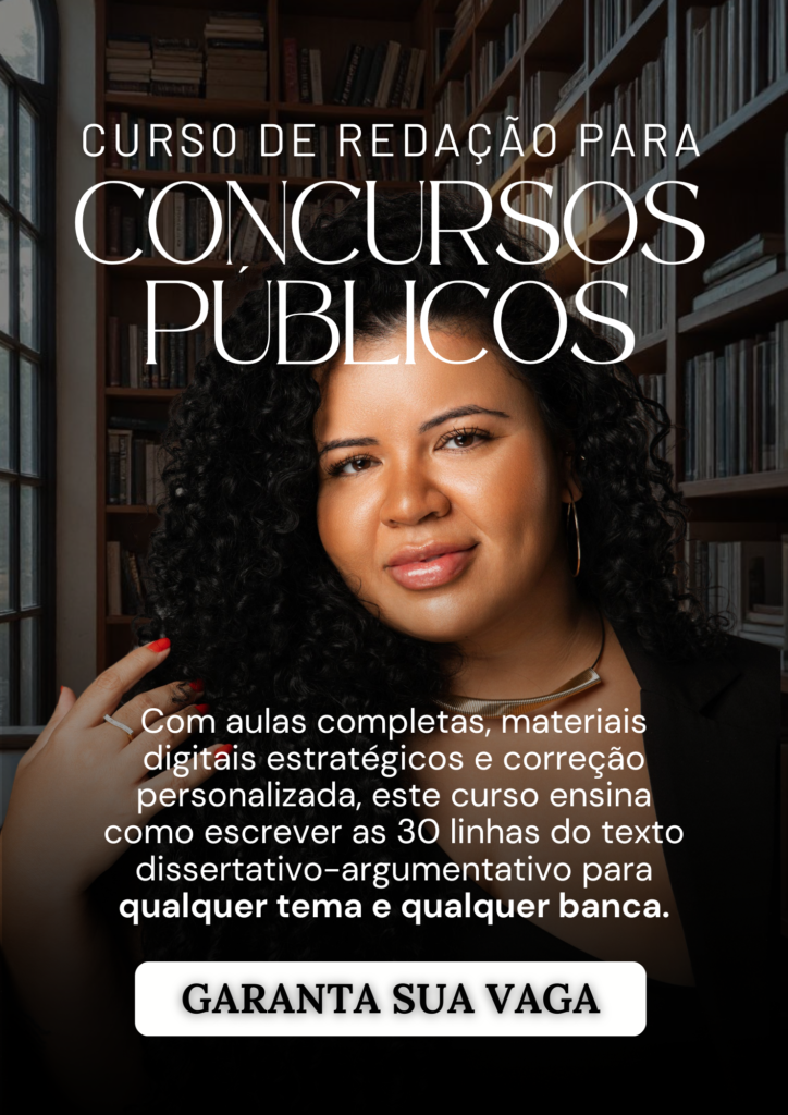 Sou professora efetiva de Língua Portuguesa na Secretaria de Estado de Educação de Mato Grosso (SEDUC/MT), onde conquistei o primeiro lugar no concurso público. Minha formação inclui doutorado pela Universidade do Estado de Mato Grosso (UNEMAT) e mestrado e graduação pela Universidade Federal de Mato Grosso (UFMT). Durante minha trajetória acadêmica, estagiei na Universidade de São Paulo (USP) e apresentei trabalhos na Universidade de Yale, nos Estados Unidos. Sou co-autora do livro de poemas Rasuras Negras e tive uma de minhas poesias selecionada entre as 10 melhores do Prêmio Pixé de Literatura (2019). Com mais de 10 anos de experiência no ensino de redação e escrita, já atuei como professora na Fundação Bradesco e no Instituto Federal de Mato Grosso (IFMT). Também fui corretora oficial do Exame Nacional do Ensino Médio (ENEM). Ajudo centenas de estudantes e concurseiros a alcançarem seus objetivos por meio da redação.