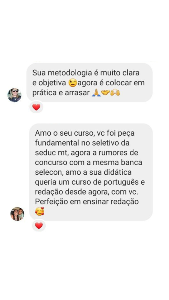 Sou professora efetiva de Língua Portuguesa na Secretaria de Estado de Educação de Mato Grosso (SEDUC/MT), onde conquistei o primeiro lugar no concurso público. Minha formação inclui doutorado pela Universidade do Estado de Mato Grosso (UNEMAT) e mestrado e graduação pela Universidade Federal de Mato Grosso (UFMT). Durante minha trajetória acadêmica, estagiei na Universidade de São Paulo (USP) e apresentei trabalhos na Universidade de Yale, nos Estados Unidos. Sou co-autora do livro de poemas Rasuras Negras e tive uma de minhas poesias selecionada entre as 10 melhores do Prêmio Pixé de Literatura (2019). Com mais de 10 anos de experiência no ensino de redação e escrita, já atuei como professora na Fundação Bradesco e no Instituto Federal de Mato Grosso (IFMT). Também fui corretora oficial do Exame Nacional do Ensino Médio (ENEM). Ajudo centenas de estudantes e concurseiros a alcançarem seus objetivos por meio da redação.